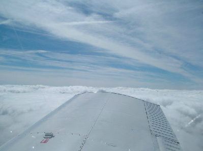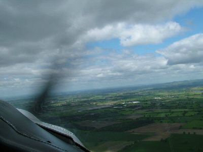 Routing south was uneventful with us in AVNS cruising at about 3,000ft but deciding to get above the cloud into some less bumpy air, also a chance for a little IMC practice. A call to Waddington Radar to upgrade to a Radar Service and ‘G-NS climbing FL 60’ brought the response ‘G-NS, roger, report reaching’. With AVNS struggling through the cloud at 80kts and a rate of climb indicated at 150-200ft minute it took so long that Waddington after about 15 minutes actually called to ask if we were there yet! Levelling out panting and wheezing brought beautiful views of blue sky, and skimming over the cloud tops made it all worthwhile.