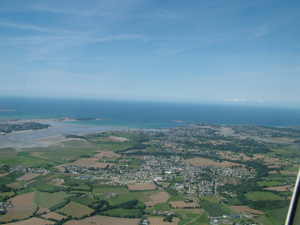 Flight plans and Gen Decs filed, lifejackets donned, rafts stowed and we were ready for the off. The well trodden route around Gatwick and along the south downs brought the familiar lowish cloud and a bit of poor viz close to Tunbridge Wells but on clearing that it was blue sky and great viz all the way, just interrupted by the occasional few fluffy cumulus. Routing was to take us out to KATHY south of the Isle of Wight then the VFR route to GARMI, overhead Cherbourg NDB (MP), across the peninsula to avoid the prohibited areas, then Granville and direct to Dinard. Phil almost believed me that KATHY was the name of a ship that goes around in circles for the benefit of aircraft and we would see GARMI further down (I’ve still got the bruise!) Farnborough Radar, London Info, Brest Info and onto Rennes Approach was completely straightforward and all provided an excellent service. Listening to the Dinard ATIS confirmed good weather down the coast.