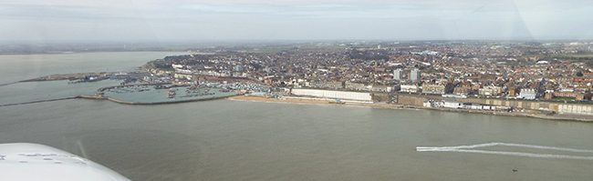 Once we reached the east end of the Isle of Sheppey we descended down to around 800ft which gave a great view over the coastal area. Running serenely along the coast we slipped past Whistable and Herne Bay admiring some of the lovely properties overlooking the sea and watching the numerous dog walkers on the prom some of whom we could see glancing up at us.