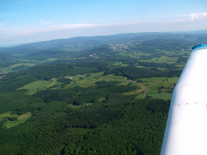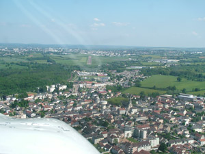 Suitably refreshed it was back to the aircraft for the last leg of the day. We couldn’t hang about too long as our next stop was Dijon Longvic which closed at 19.00 local and we had around another hour and 15 minutes flying to get there. Climbing out across the town we turned left for more or less a straight line towards Dijon. This took us over some beautiful unspoilt countryside with only small hamlets and farmhouses below. Some 30 miles out of Nevers the ground starts to rise quite steeply with various points over 2600ft above sea level. Again the sky was clear with only very distant towering cumulus building up in the afternoon heat well to our south. Routing over the sparsely populated high ground of forests, lakes and deserted meandering roads was a true flying pleasure and all too quickly over as we could see the expanse of the city of Dijon basking in the sunshine below the last ridges of high ground.