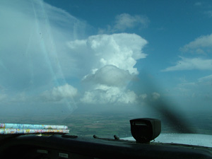 The wind was increasing to 16/18kts but the cloud was scattered with a high cloudbase. So off to Seething, another wartime Liberator base, this time of the 448 Bomb Group whose R24 was almost into wind. One can only imagine what this area of England was like during the war years with so many heavy bomber bases, at least three squadrons at each, and all in such close proximity to each other. Again, all in and into the very pleasant clubhouse for coffee. It wasn’t long before the wind began to pick up and a monstrous wall of blackness closed on the field. Those of you that have seen the film ‘Independence Day’ with have some idea of the sky! After that cleared, another appeared and we spent nearly two hours watching the rain fall, the windsock pirouetting, the lighting flash and working out where the nearest station was before the sun finally slowly appeared to the SE. Phone calls showed a slightly clearer picture towards home, and with diversions carefully worked out it was off into clearing skies for the return to North Weald airfield. Several large and small very heavy showers were encountered on the route back and certainly much closer to each other than on the way out. However routing around them didn’t present a problem apart from a bit of glare where the sun came through and the weather Gods were kind in not dumping one over NW as we returned to a breezy R20, all within 10 minutes of each other. There were the usual happy smiling faces at the end of our fly out day, although I suspect that for some at least it was a smile of relief.