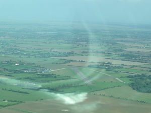 The route out was uneventful with excellent visibility and some very well defined heavy showers that were easy to route around. Tuning into Buckenham radio we could hear WH and KK being held out to the east to allow the parachutists to land. Landing was on runway 25, at 800m long and 18m wide a lot smaller than our recent flyout ut trips. R25 also has a considerable number of hay bales, several hundred tons of hardcore and other assorted junk not far off the threshold which gives a rather unusual perspective on the approach. Still, all in after a go around by MM due to NS backtracking. Old Bucks restaurant was very busy and lunch was taken outside in the sunshine whilst watching people throw themselves out of a perfectly good aeroplane!