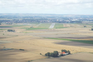 Joining crosswind for a left hand circuit took us right across a small hill and woods with the huge concrete dome of La Coupole the WW2 V2 Rocket site nestling inside. This German facility was frequently bombed by the Allies to prevent it becoming operational and is now a museum and certainly looks worth a visit in the future. The link below gives information about the site.