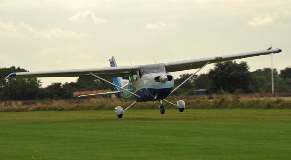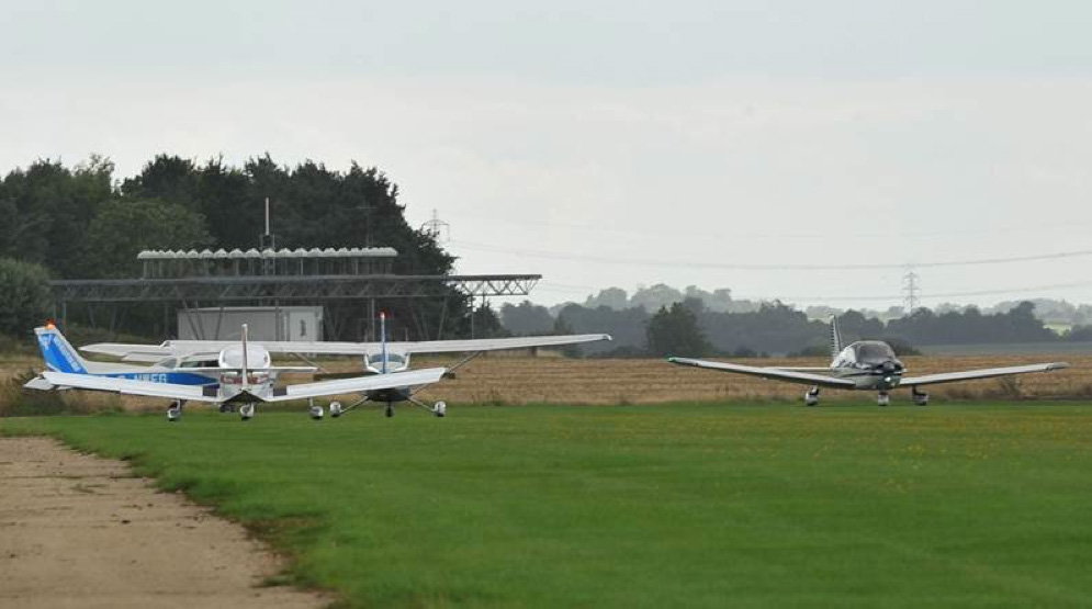 Before we knew it we were all breaking into the circuit at Nuthampstead, and for a moment this sleepy little grass airfield became busier than Heathrow as seven aircraft streamed to land one behind the other. Parking at Nuthampstead is at the northern end, so fortunately with 05 being the favoured runway this allowed us all to land and then just keep rolling to the end to clear. A point of note is that there’s an active aero-modelling community at the airstrip and for this reason you are advised to fly an initial circuit to warn them of your intentions – although with Malcolm and JR performing this function in Fox-Charlie as first to arrive, we kinda think the aero-modellers got the message after that and the rest of us followed straight in. There is also an active clay pigeon shooting site immediately next to the airstrip, so it pays not to venture too far off the centreline!