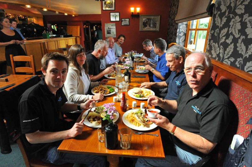 With everyone safely down and parked, and the airfield movements log completed, we then set off for a very pleasant stroll back down the runway before bearing right through the village and left at a T-junction to take us to the village pub: The Woodman.
